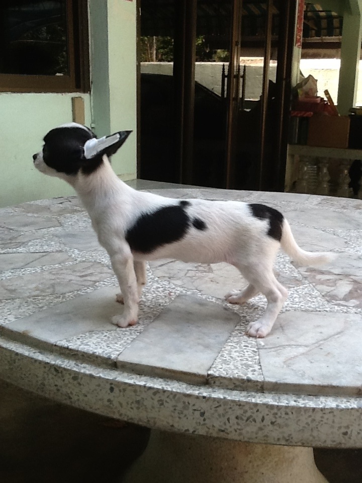 ลูกชิวาวาเพศเมียขนสั้น สีขาวน้ำตาล และขาวดำ สวยไซค์เล็ก แข็งแรงวัคซีนครบ มีใบเพ็ด
