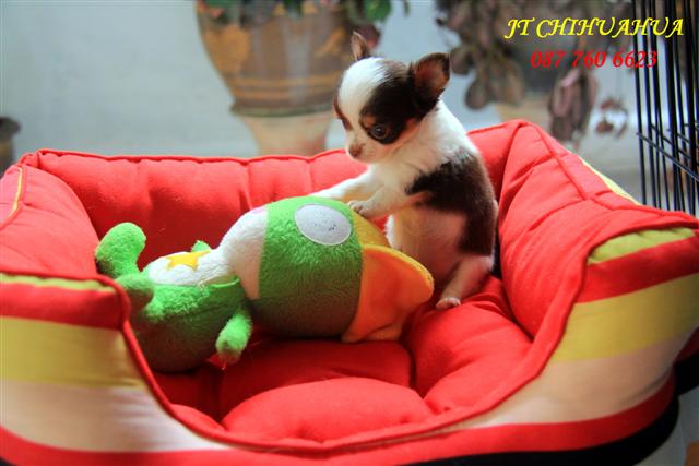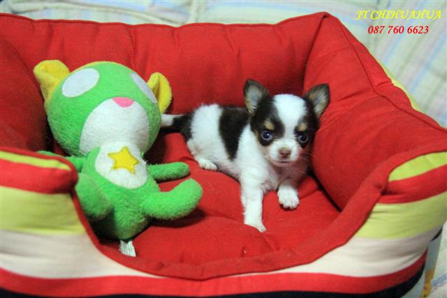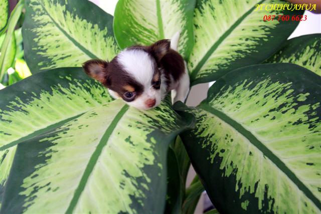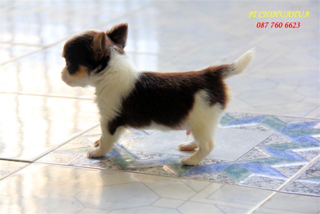 ลูกชิวาว่าขนยาว สีช็อกโกแลตแฟนซี(DarkChocolate) เพศผู้ ไซด์เล็ก..