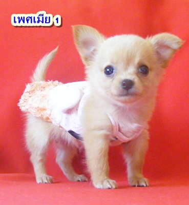 เพศเมีย1 น้องชิวาวาขนยาว เพศเมีย อายุ 48 วัน สีน้ำตาลอ่อนออกครีม ไซด์เล็กราคา 8,500 บาท