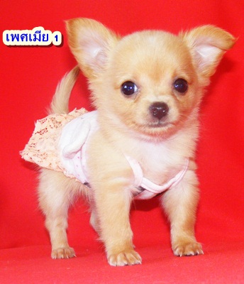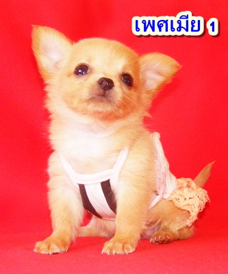 เพศเมีย1 น้องชิวาวาขนยาว เพศเมีย อายุ 48 วัน สีน้ำตาลอ่อนออกครีม ไซด์เล็กราคา 8,500 บาท