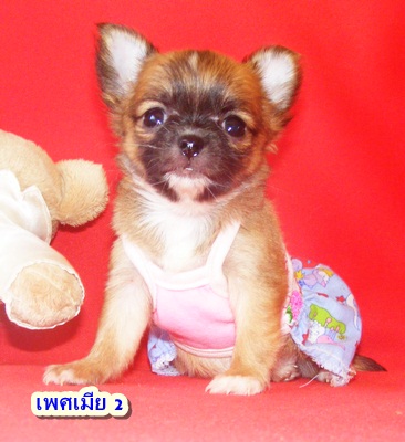 เพศเมีย2 น้องชิวาวาขนยาว เพศเมีย อายุ 45 วัน สีน้ำตาล หน้าหักสั้น สวยมาก หัวสวย ฟอร์มสวย