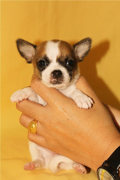 ชิวาวาขนสั้น ไซต์เล็ก สีขาว + น้ำตาล มาร์คกลิ้งสวยค่ะ ภาพถ่ายปัจจุบัน สายเลือดดี เพศผู้ 1 ตัว ถ่ายพยาธิแล้ว 1 ครั้ง ตามภาพเลยค่ะ เกิดวันที่ 4 ธันวาคม 55 อายุ 44 วัน หัวโตมาก หน้าสั้นค่ะ ขนแน่นฟูสวย ตัวจริงน่ารัก ขี้เล่น ทานอาหารเก่ง เลี้ยงง่าย สุขภาพร่างกายแข็งแรง พ่อแม่เป็นขนสั้น ทั้งคู่ สุนัขเป็นสุนัขบ้านค่ะ สนใจสามารถเข้ามาชมน้องได้ค่ะไม่ซื้อไม่ว่ากันค่ะ สอบถามข้อมูลน้องเพิ่มเติมได้ค่ะ มีบริการส่งจ้า
