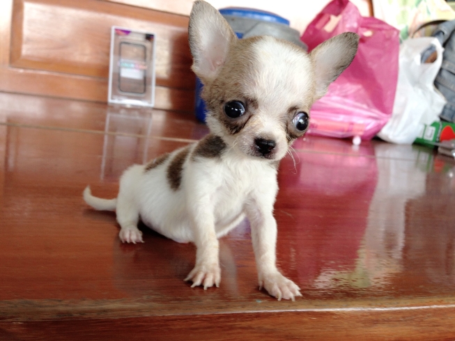 น้องหมาชิวาวา สีแฟนซี ขาว-น้ำตาล ไซค์ทีคัพ