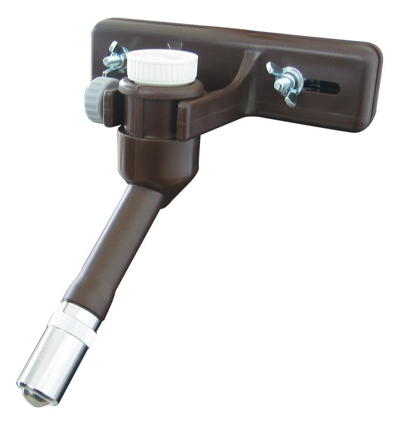 ที่ให้น้ำสุนัขติดกรง สำหรับสุนัขขนาดใหญ่ เพียงแค่ใช้ขวดน้ำพลาสติก คว่ำลงและขันเกลียว กับก้านให้น้ำพลาสติก