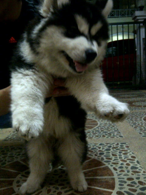 ผมยังไม่มีชื่ออย่างเป็นทางการ (สงสัยรอพ่อแม่คนใหม่ตั้งให้คับ) หนุ่มน้อยสายพันธุ์ อลาสกัน มาลามิวท์ Alaskan Malamute วัย เกือบ 3 เดือน ทำวัคซีนมา 3 เข็มป้องกันอะไรบ้าง จำไม่ได้แล้วคับ แต่แม่มีใบรับรองวัคซีนอยู่ มีใบเพ็ดดีกรี รับรองสายพันธุ์ ระบุ พ่อแม่ที่ให้กำเนิดผม พ่อซื้อผมมา 25,000 บาท ผมชอบวิ่งเล่นและบ้าพลังมากฮะ อิอิ แม่บอกว่าผมสุขภาพดีมาก โครงสร้างใหญ่ ขนแน่นฟู แม่ยินดีให้แวะมาดูมาอุ้มก่อนเลย ผมขี้เล่น ขี้บ่น และขี้อ้อนน่ารักสุดๆ ฮะ ( ยอตัวเองหน่อย ฮ่าๆๆ ) เลี้ยงผมแล้วจะไม่ผิดหวัง เพราะถ้าผมเป็นหนุ่มเต็มที่ ผมสัญญาว่าจะเป็นพ่อพันธุ์ที่ดี รักและอยู่ในโอวาสตลอดไป............
