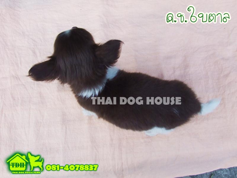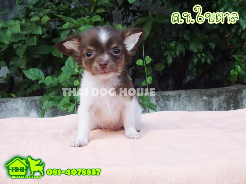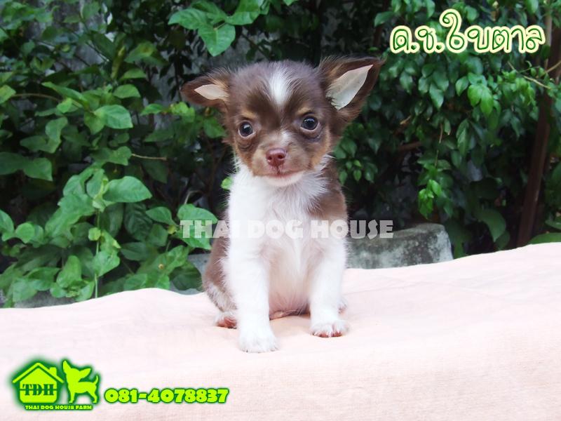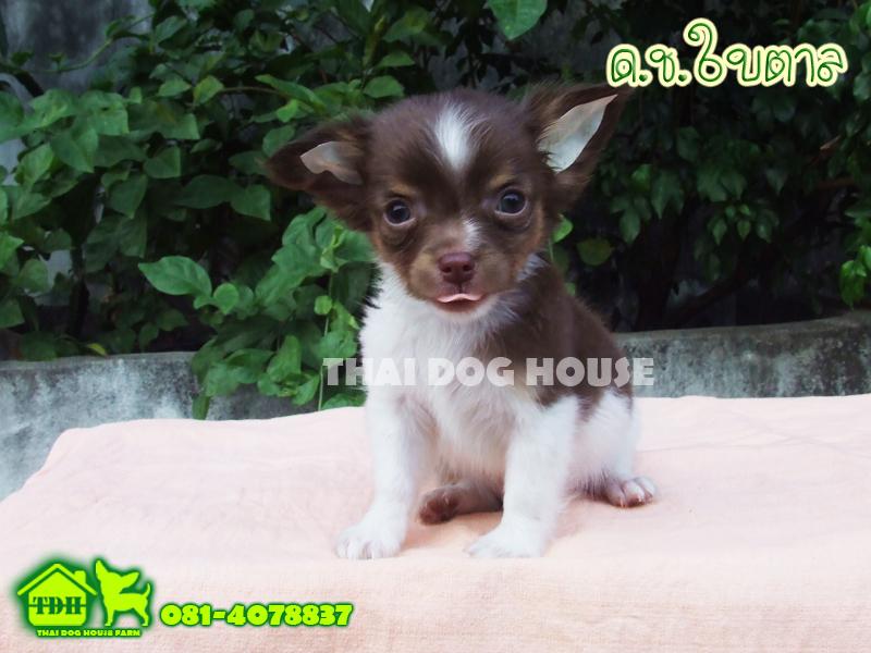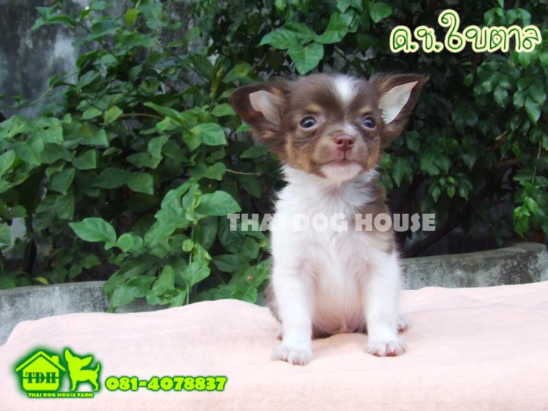 ชิวาวาเพศชายขนยาว สีขาว-ช็อคโกแลต มาร์คคิ้ว
