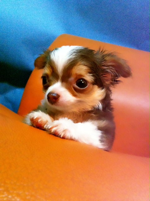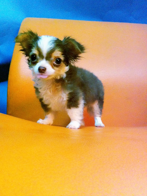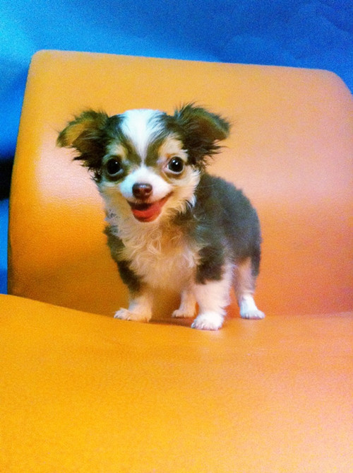 ชิวาวาขนยาวเพศผู้สีขาว-ช๊อคฟอร์มสวยเป๊ะวัคซีนมาแล้วรับรองสวยแน่นอน