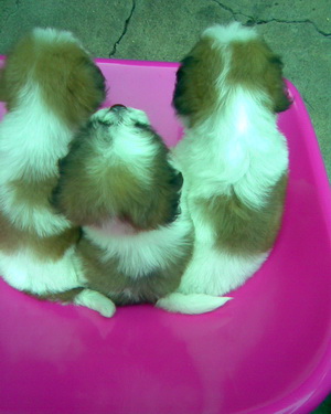 ลูกชิสุห์ผสมพุดเดิ้ลเพศเมียสามตัวถ่ายพยาธิ+วัคซินแล้ว