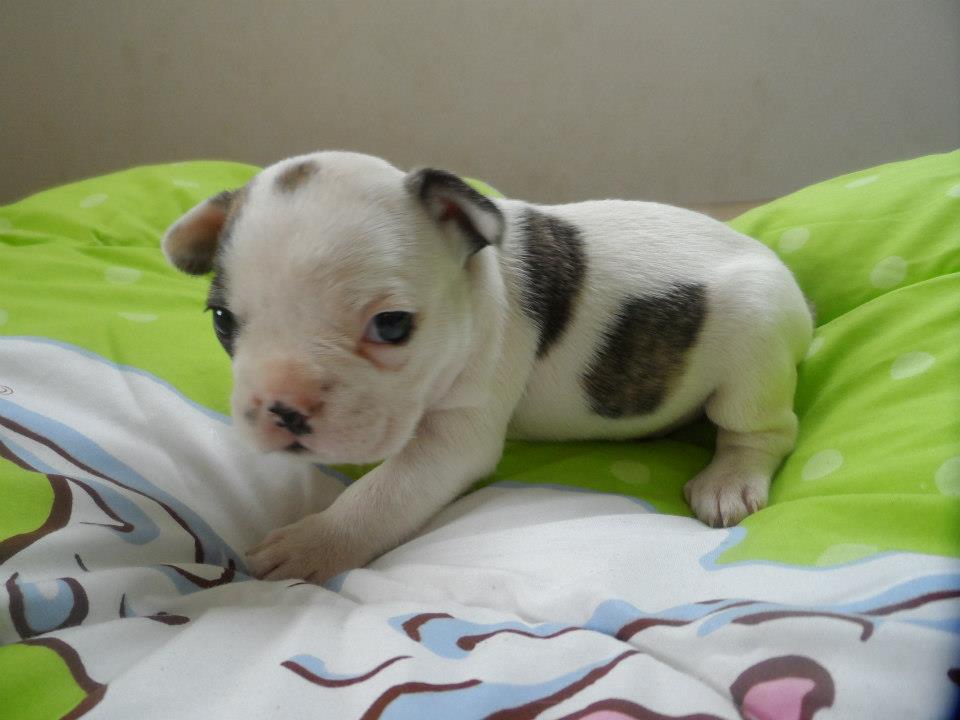 ลูกเฟรนบลูด๊อก ตัวผู้ สีขาวลายเสื้อ เกิดเมื่อ28/12/55
