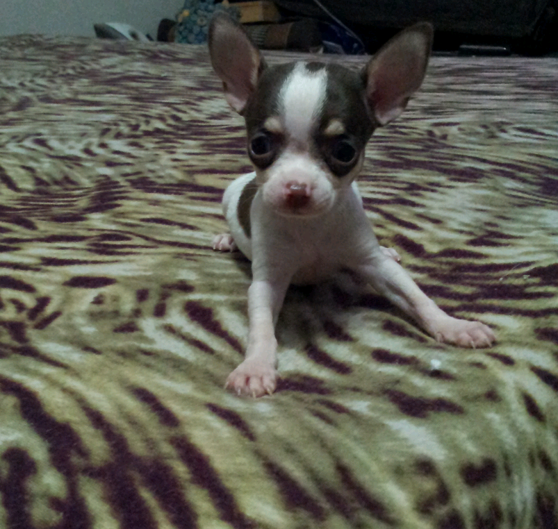 ขายชิวาว่าขนสั้นสีขาวช็อกตัวผู้ sizeเล็ก 6500โทร0850578412 0908033004