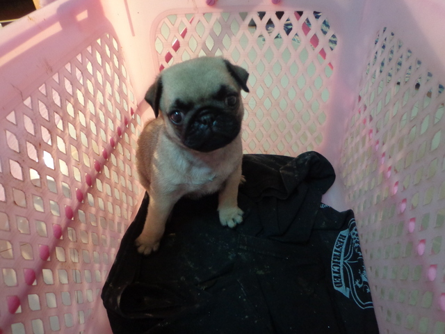 น้องปั๊กหมาบ้านปลอดโรค เพศผู้ ราคาถูก สีฟอนขาวโอโม่ มีจัดส่ง รับประกันโรคลำไส้ด้วย