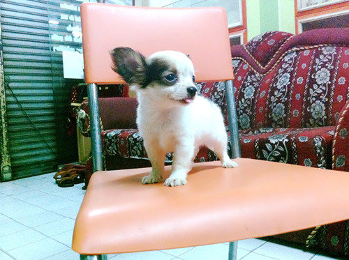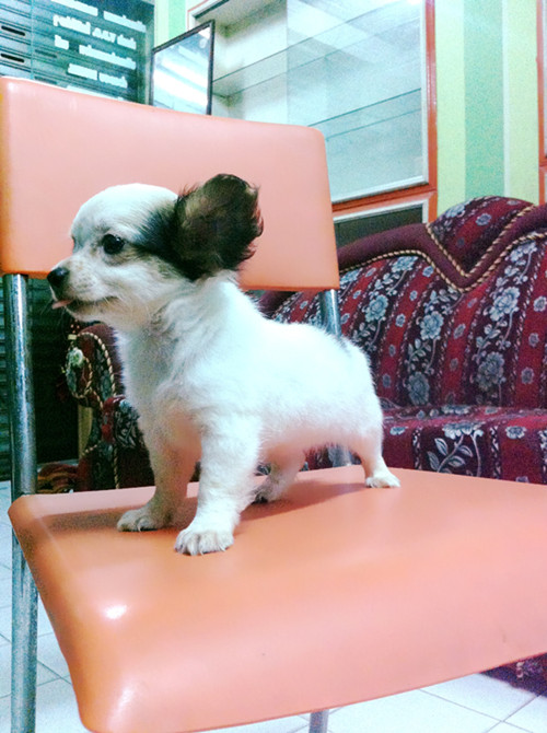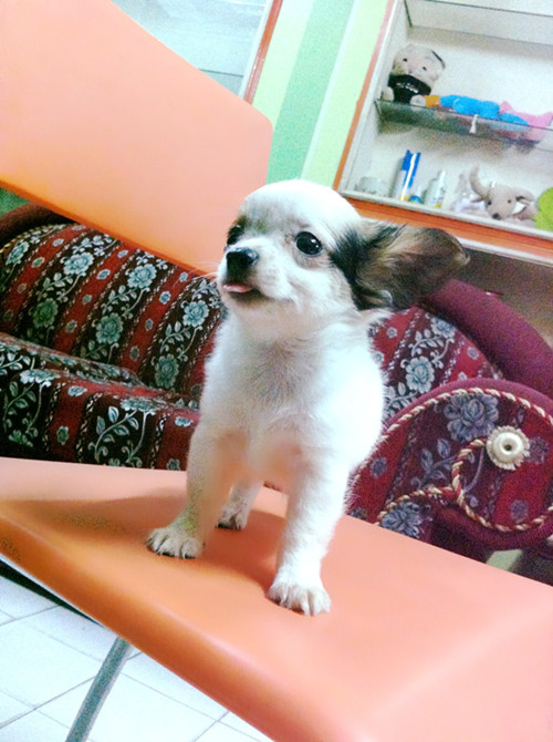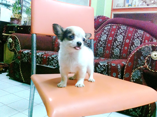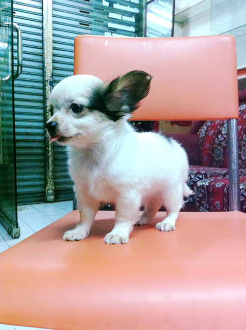 ถุงทองชิวาวาแบบขนยาวสีขาวแฟนซีเพศชายวัคซีนแล้วราคาไม่แพงจร้า