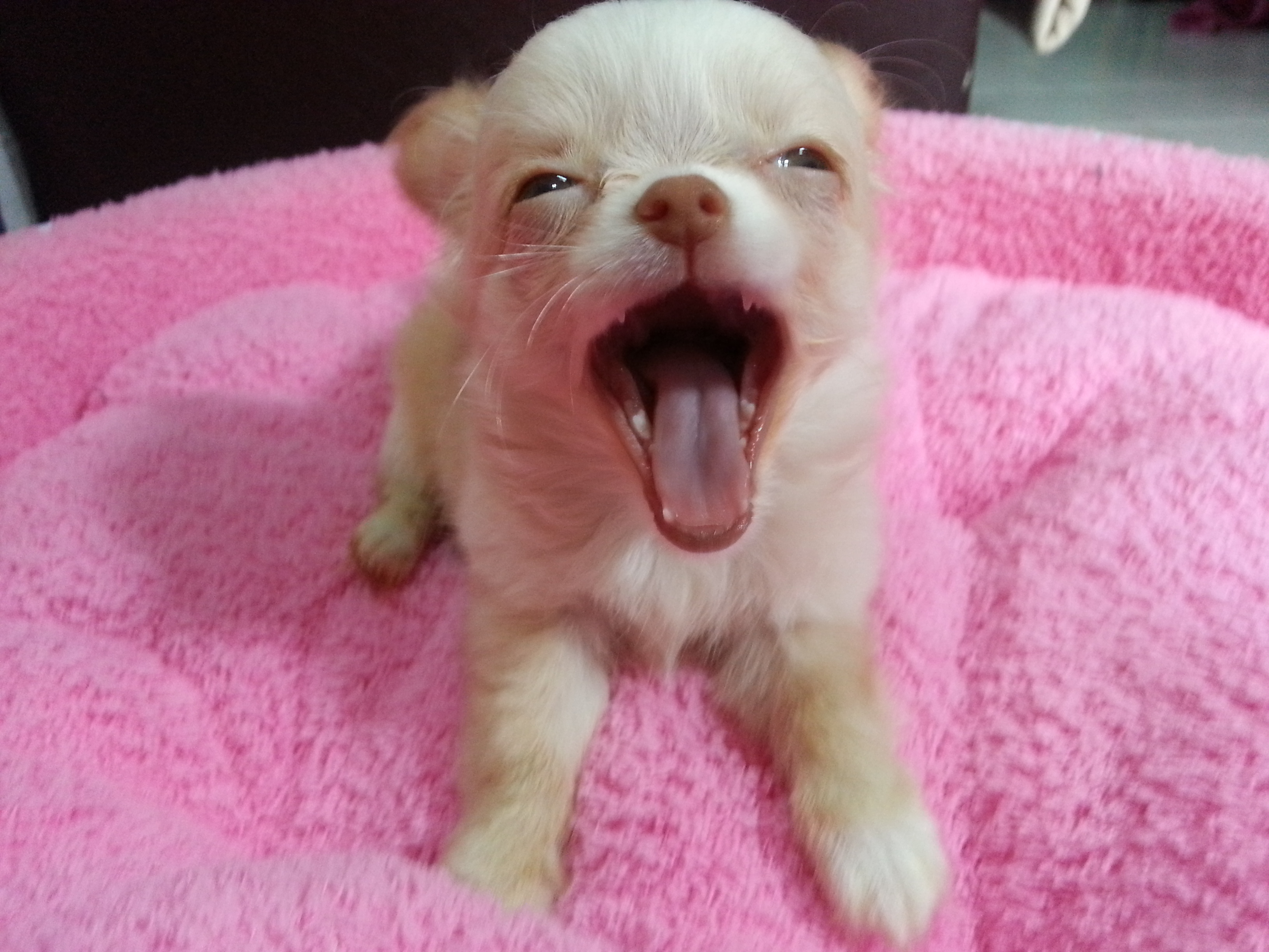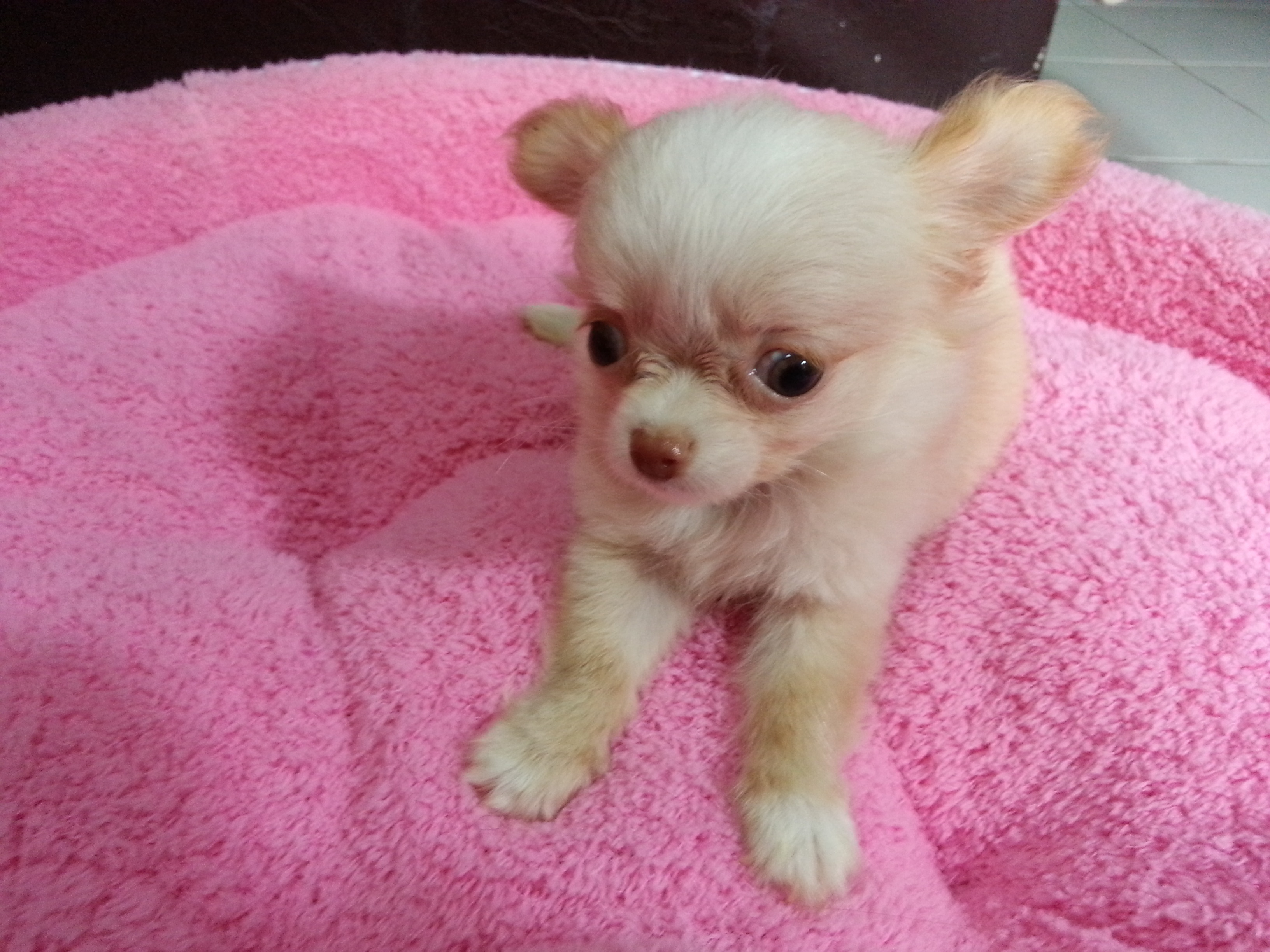 ชิวาวาทีคัพผู้หญิง สีแฟนซี ขนยาว หน้ากุด หัวโตๆสวยๆ กินอาหารเม็ด ใบเพดเต็มใบ ขี้เล่น ขี้อ้อน ร่าเริง ขับถ่ายเป็นที่
