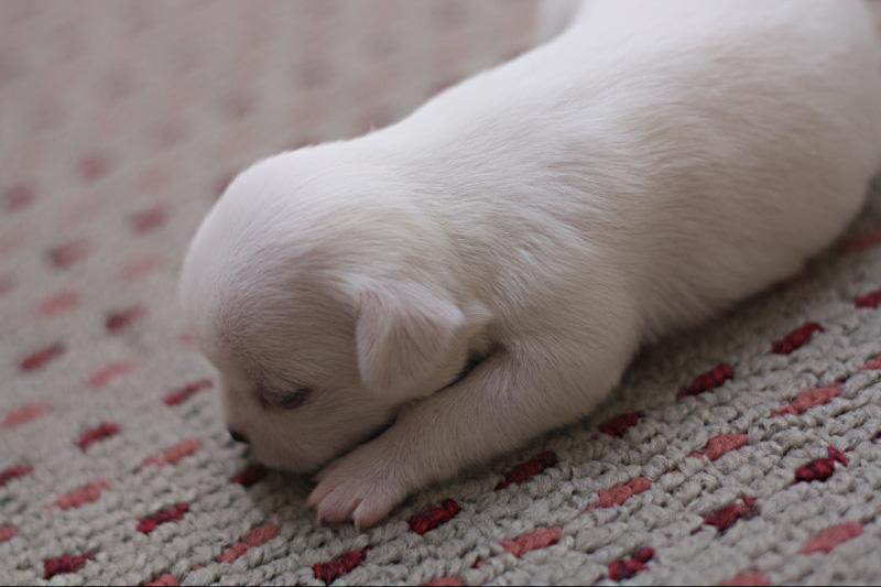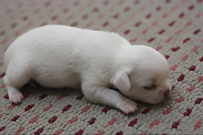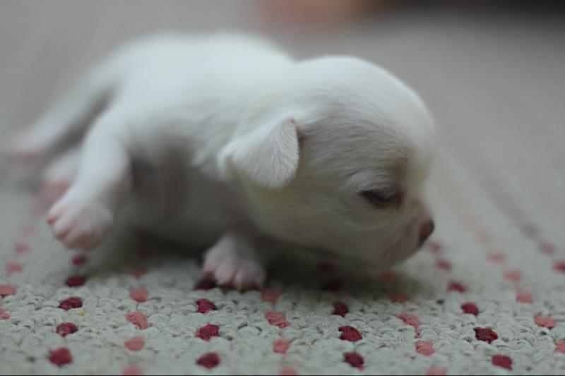 ชิวาวาเพศเมียสีขาวหน้าสั้นกุ๊ดสายเลือดดี น่าจับจองเป็นเจ้าของ