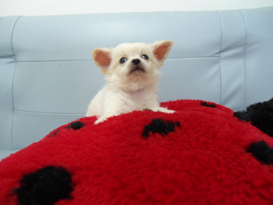 น้องชิวาว่าสุดหล่อ เพศผู้ ขนยาว สีขาวครีม อายุ60วัน