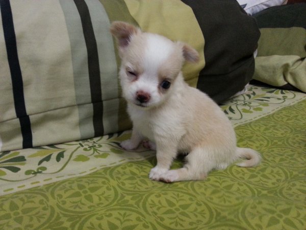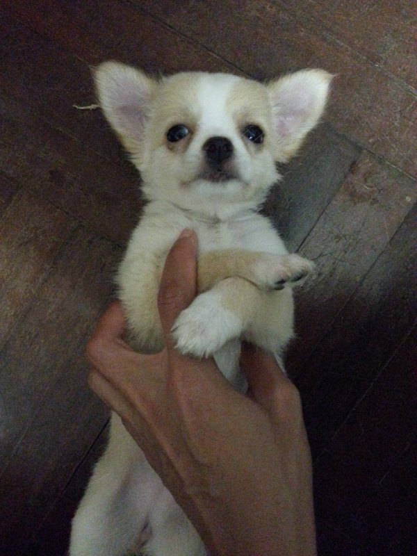 >น้องชิวาวา เพศหญิง ขนยาว สีครีม มาร์คหน้าขาวสวย ปลายหางสีขาว มีถุงเท้า 4 ข้าง เกิดวันที่ 17/10/55
