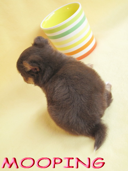 "น้องหมูปิ้ง" เพศผู้ขนยาวสีชอคโกแลตแทน หัวโตหน้าสั้น ขาสั้นหุ่นสวย ขนแน่น