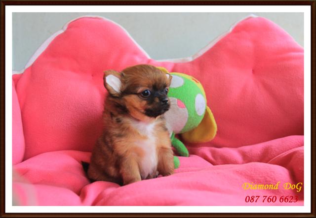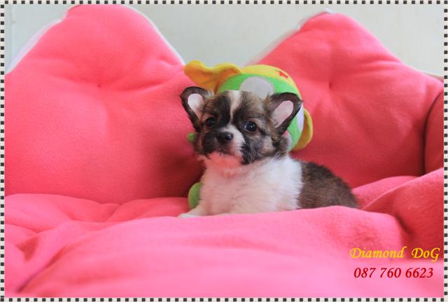 ขายลูกชิวาวาขนยาว เพศผู้และเมีย หน้าสั้นบี้หัก หัวแอ๊ปเปิ้ล ไซต์เล็ก ขาเตี้ยล่ำสั้น อายุ2เดือน