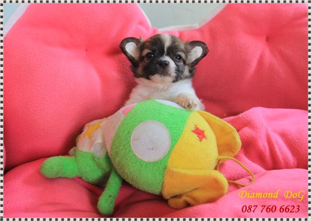 ขายลูกชิวาวาขนยาว เพศผู้และเมีย หน้าสั้นบี้หัก หัวแอ๊ปเปิ้ล ไซต์เล็ก ขาเตี้ยล่ำสั้น อายุ2เดือน