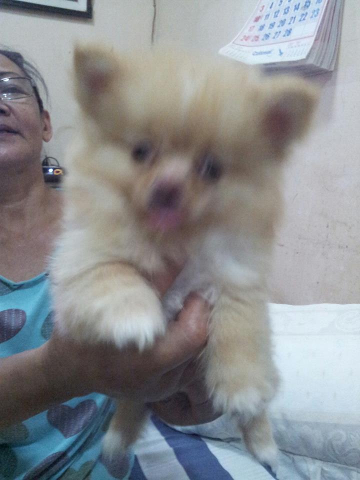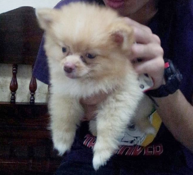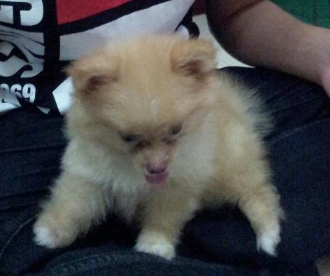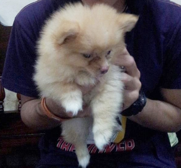 ลูกปอมเพศผู้ อายุ 3 เดือน (กำลังผลัดขนออกสีครีม) ลูกผสมระหว่างปอมขาว+ปอมมินิสายอเมริกา