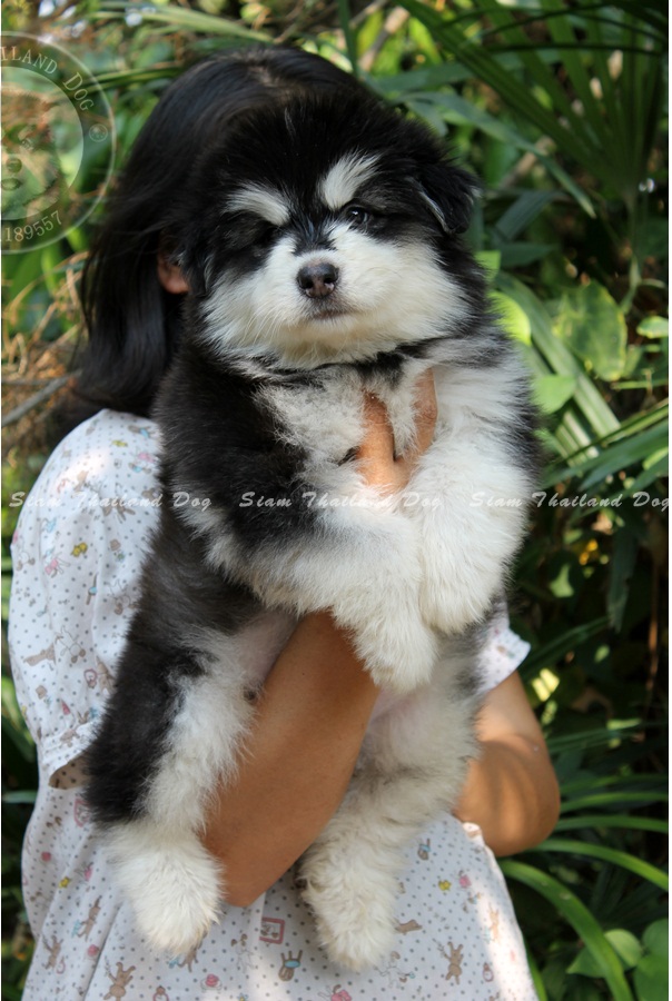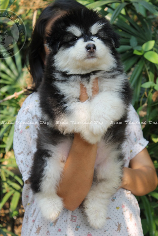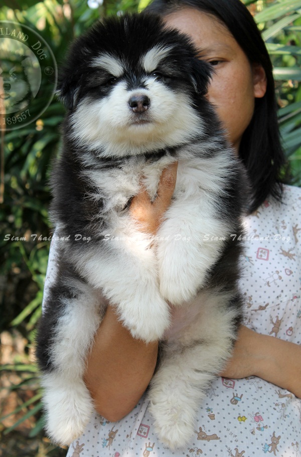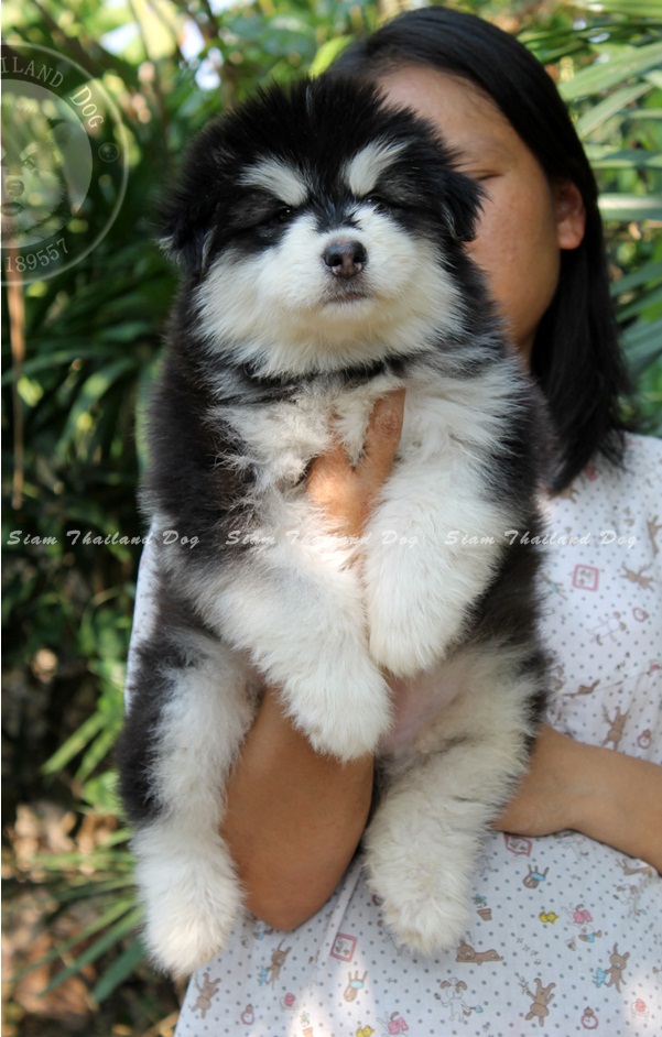 อลาสกัน มาลามิว เพศผู้ สีดำขาว อายุ เดือนกว่า ขนแน่นๆฟูๆ เกรดคุณภาพ