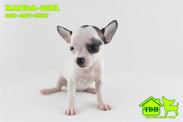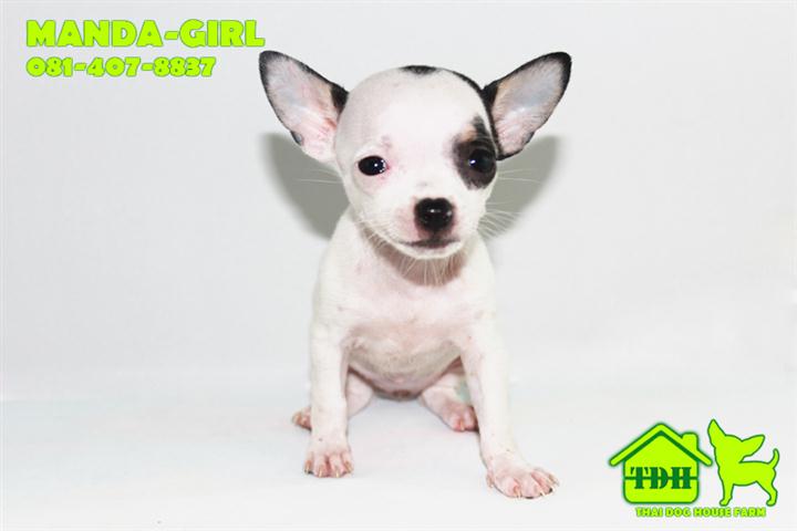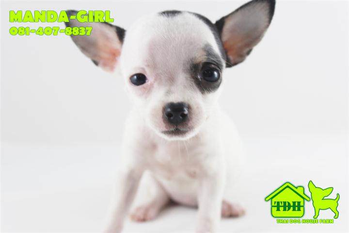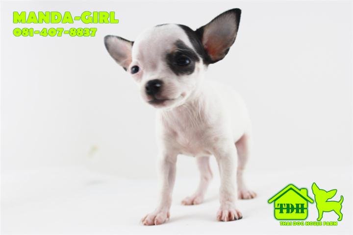 ชิวาวาขนสั้นสีขาว-ดำ มาร์คกิ้งโมเช่ คิ้ว 1 ข้าง