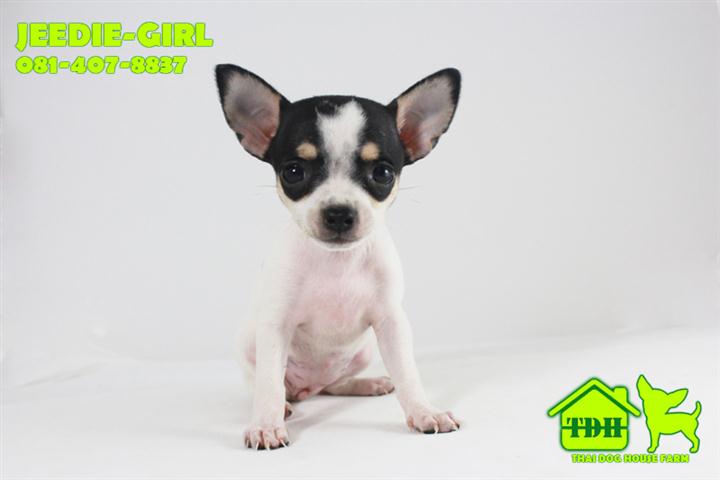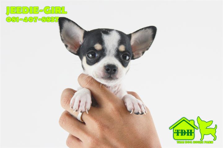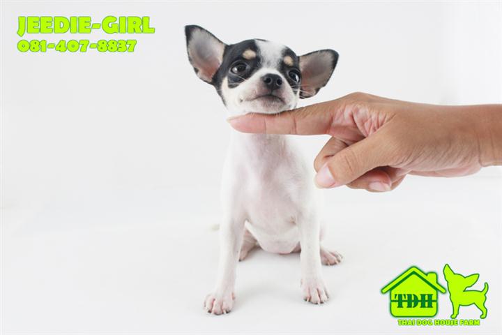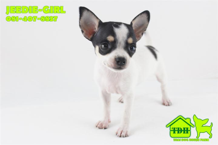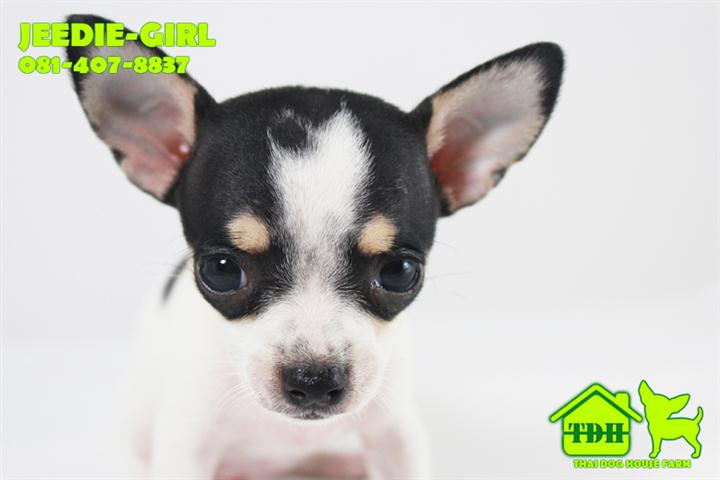 ชิวาวาขนสั้นสีขาว-ดำ มาร์คกิ้งชัด คิ้วเข็ม 2 ข้าง