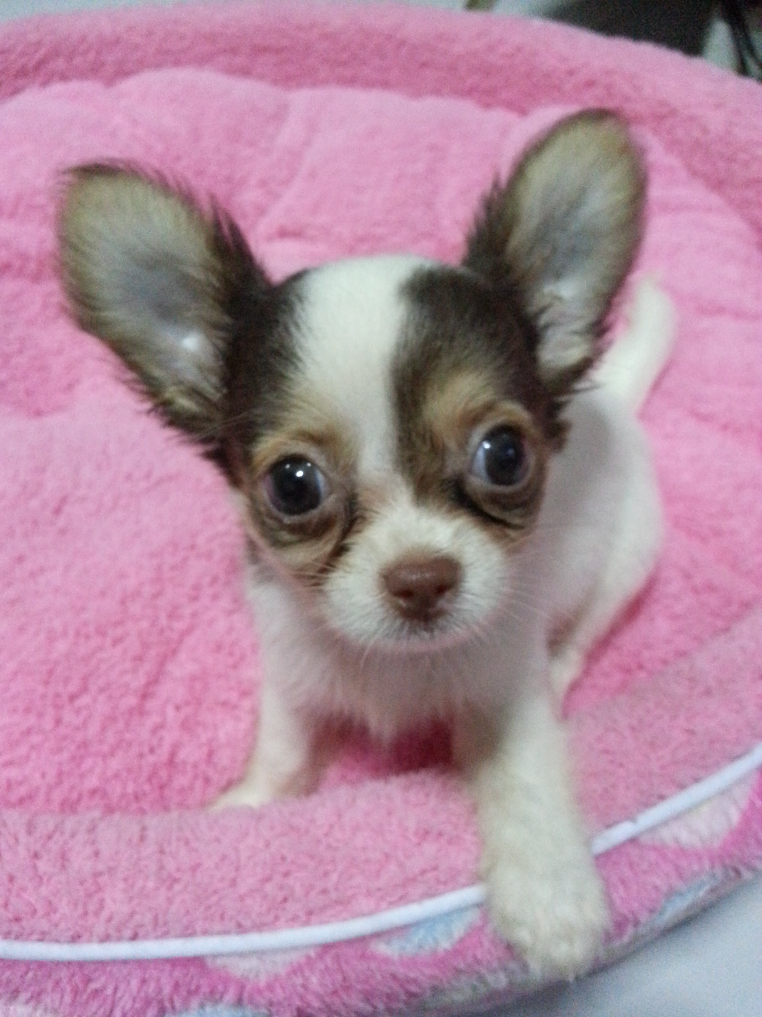 ชิวาวาผู้ชายขนยาวแน่น ไวท์ชอคแทน มีคิ้ว มีแก้ม ขี้เล่น น่ารัก ฉลาด