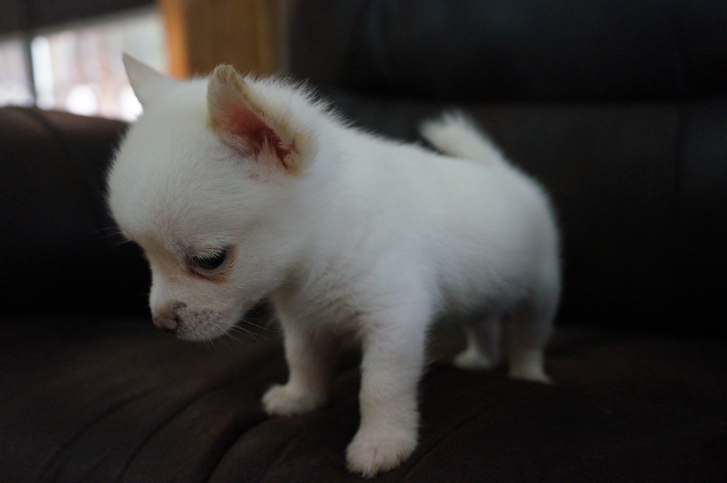 [ขายแล้ว] ลูกสุนัขพันธุ์ผสม เพศผู้สีขาว แม่เป็นชิวาว่า พ่อเป็นปอม