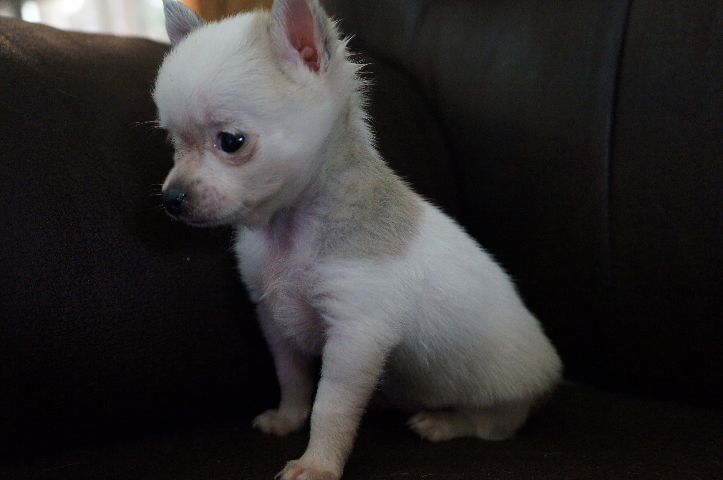 [ขายแล้ว] ลูกสุนัขพันธุ์ผสม เพศเมียสีขาวแต้มเทา แม่เป็นชิวาว่า พ่อเป็นปอม เกิดวันที่ 26 มกราคม 2556 สนใจติดต่อ 0892243458 ราคา 3500