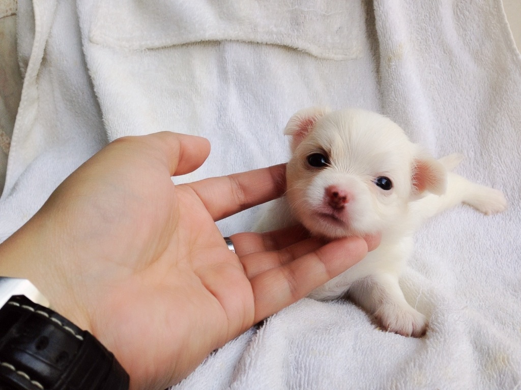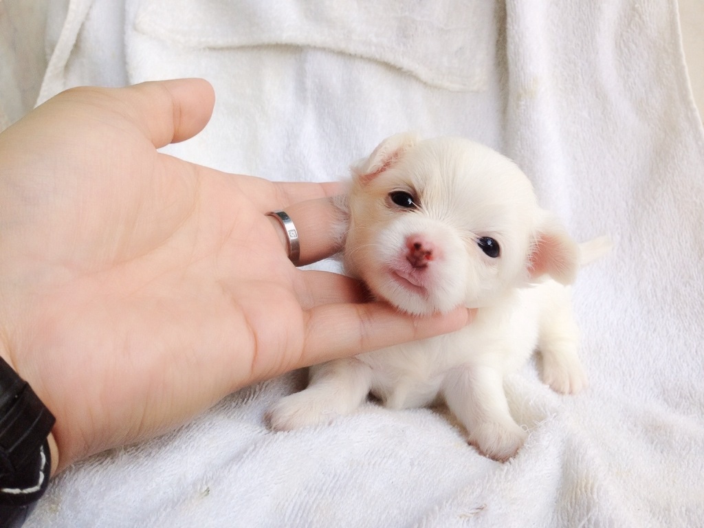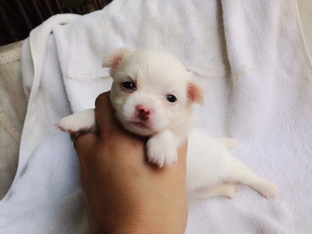 ชิวาวา ขนยาว เพศเมีย ขาวล้วน อายุ 30 กว่าวัน พร้อมเปิดจอง