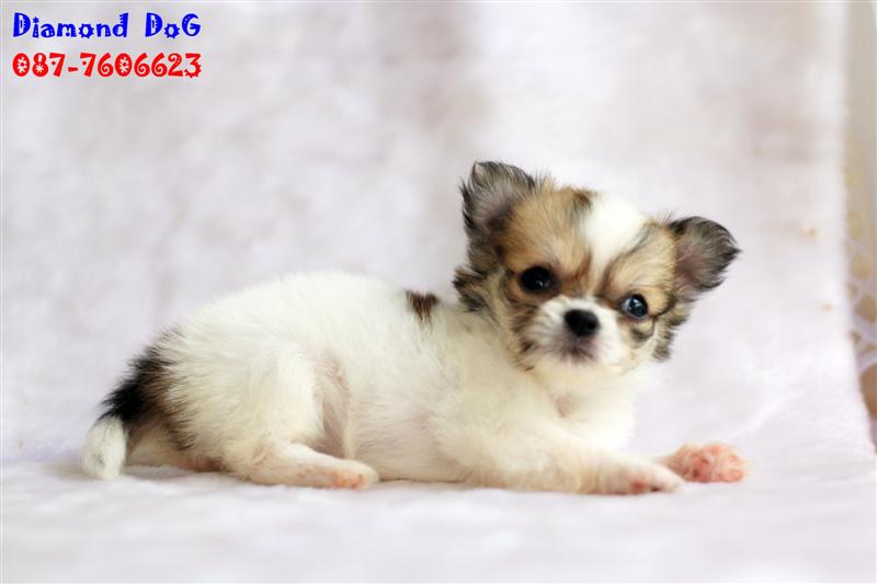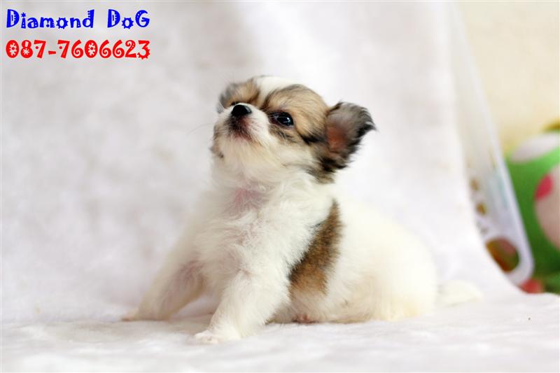 ขายลูกชิวาวาขนยาว เพศเมีย สามสีแฟนซี อายุ 50วัน