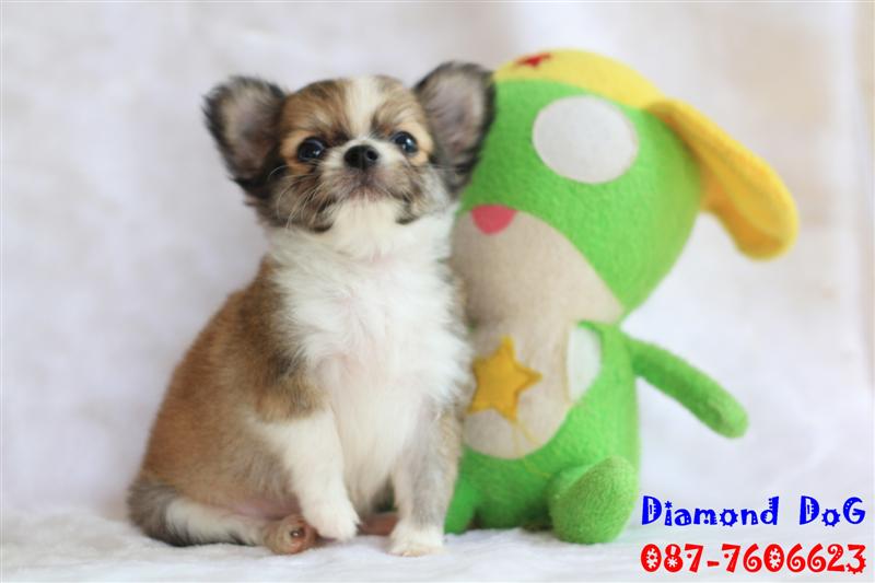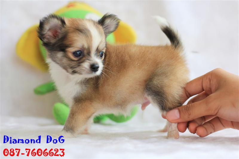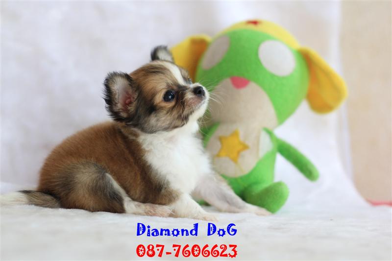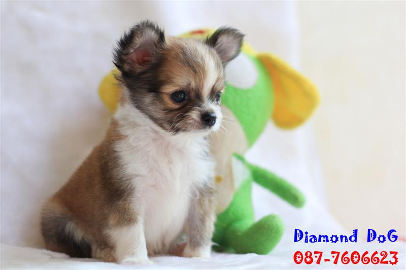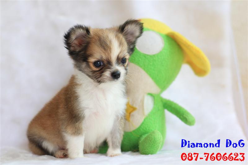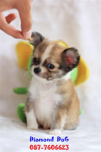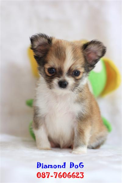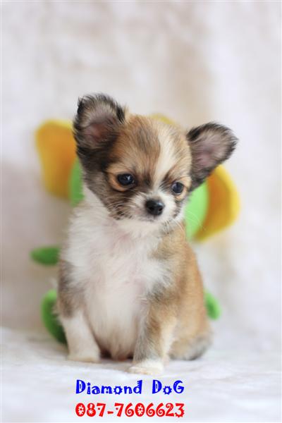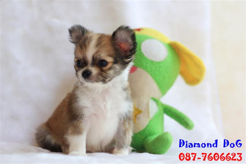 ขายลูกชิวาวาขนยาว เพศผู้ สีน้ำตาลแฟนซี อายุ 50วัน