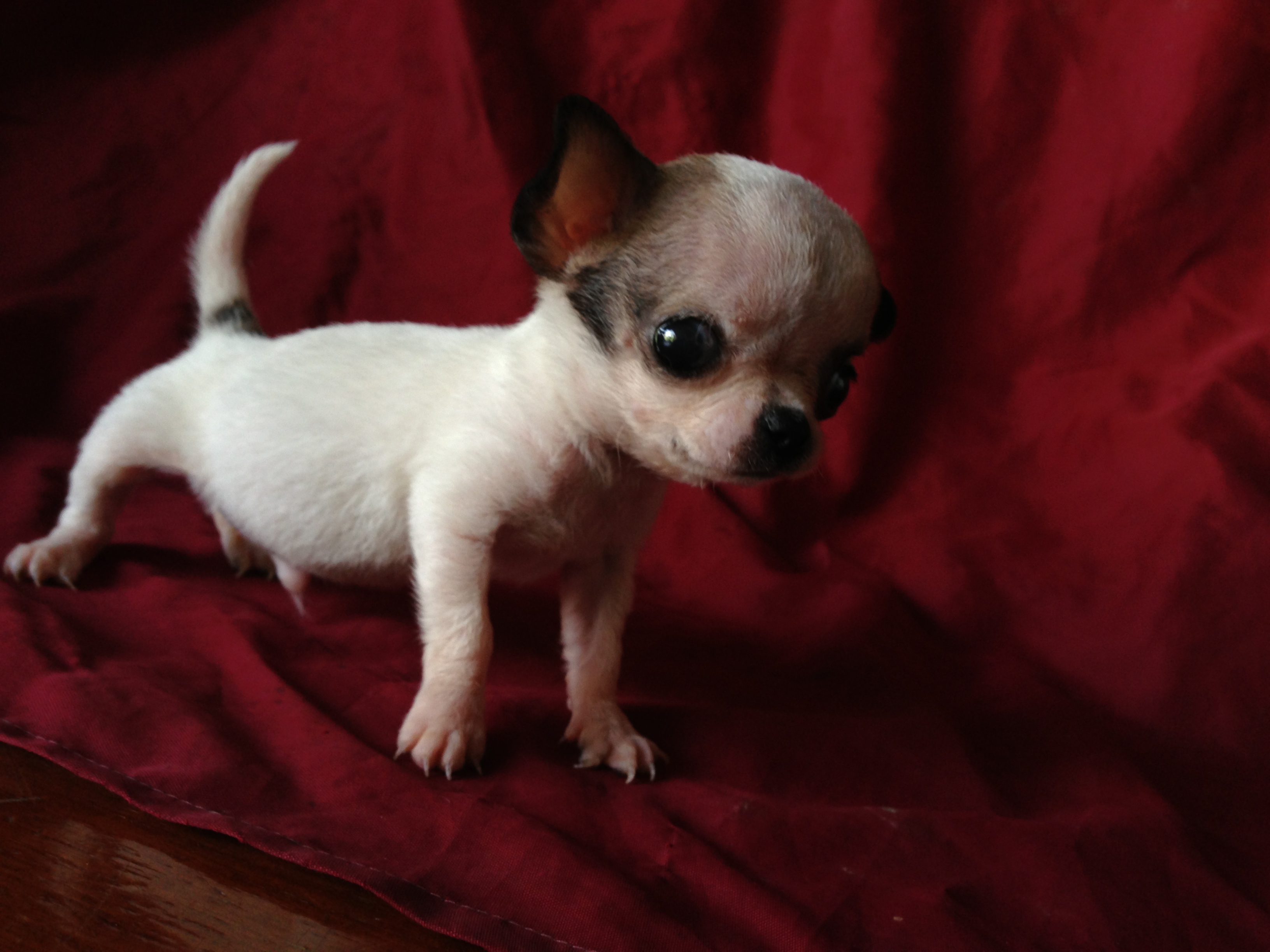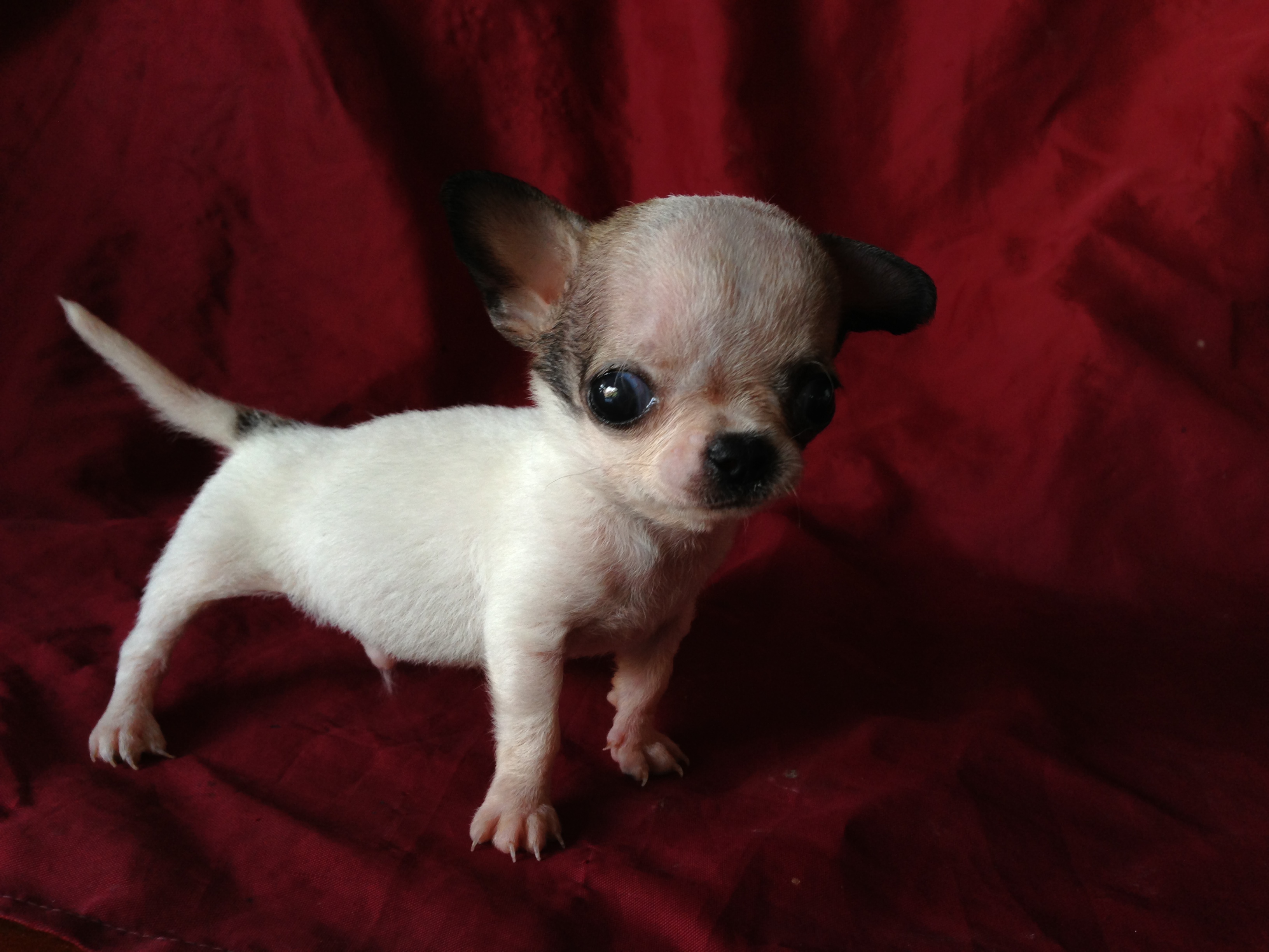 น้องหมาชิวาวา สีแฟนซี ขาว-น้ำตาลเข้ม ไซค์ทีคัพ อายุ 50 วัน