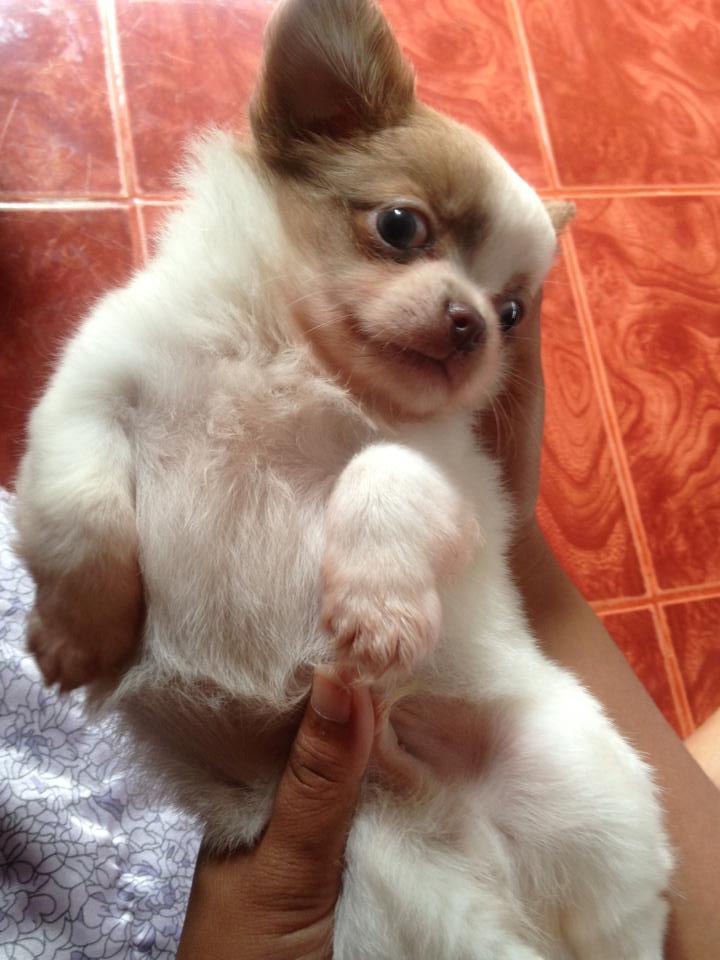 ขายลูกชิวาวาขนยาวเพศชาย หน้าส้น ขาส้น หัวแอปเปิ้ล สายใต้หวันหน้าสวยมาก