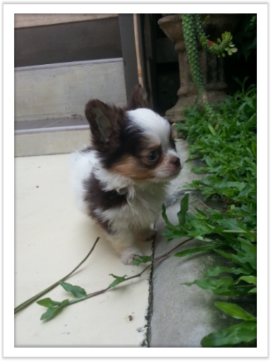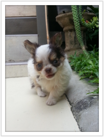 ชิวาวาขนยาว เพศผู้ สามสี สีแฟนซีขาวชอคโกแลต