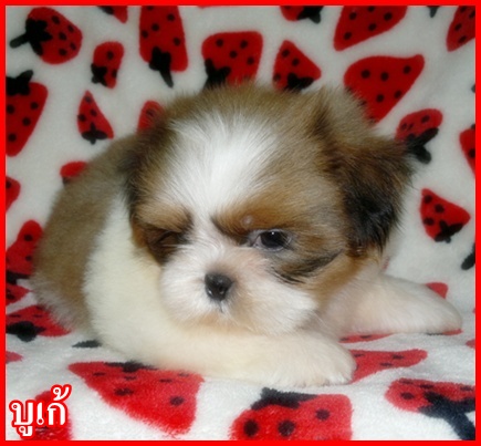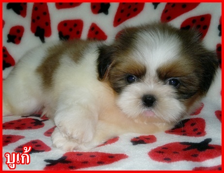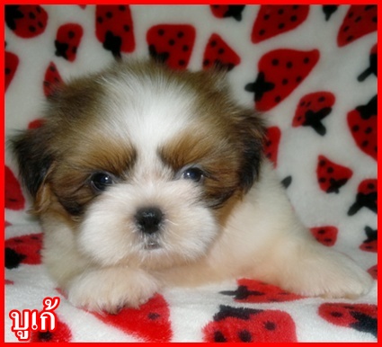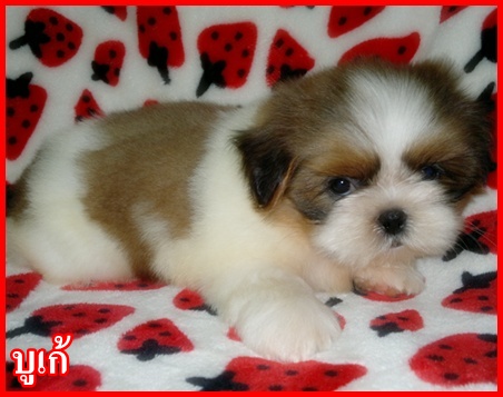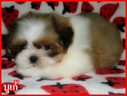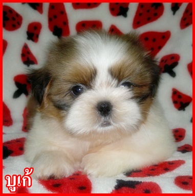 บูเก้..ลูกชิสุทอยเพศผู้ สีขาวน้ำตาล สามตอน สวยมาก (นัดสถานที่ส่งได้คะ)