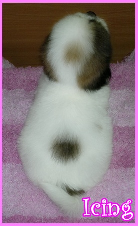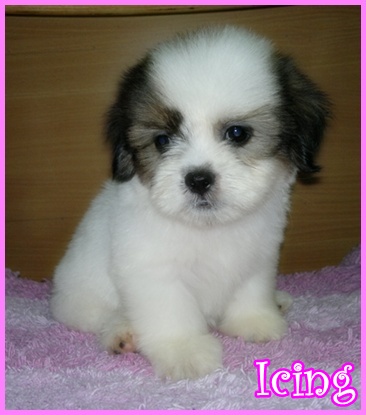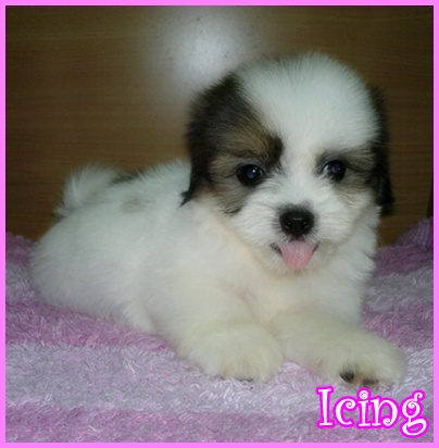 ไอซิ่ง..ลูกปอมผสมชิสุ เพศผู้ สีแฟนซี ลำตัวขาวเยอะ หน้าตาน่ารัก