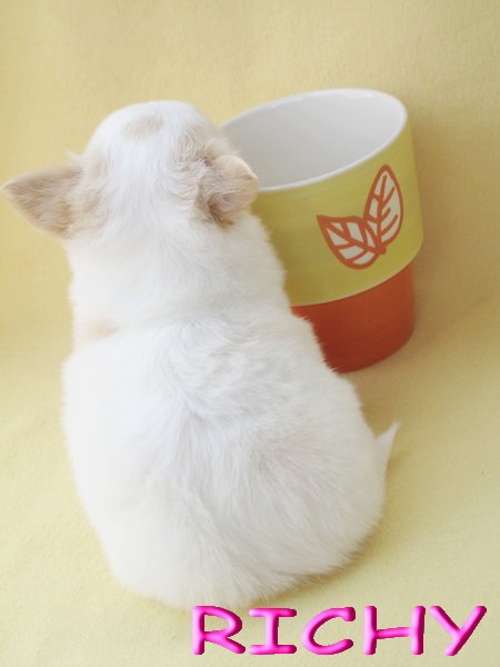 "ริชชี่" เพศเมียขนยาวสีขาว( หลังหู2ข้างมีสีครีมนิดนึงค่ะ ) หัวโตหน้าสั้น ขนแน่นสวย