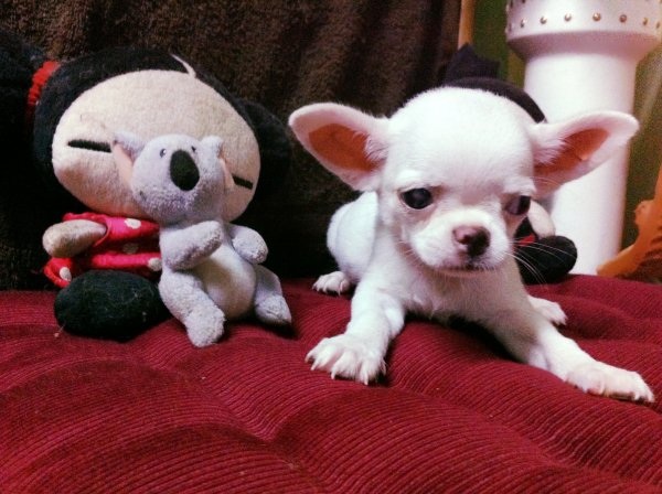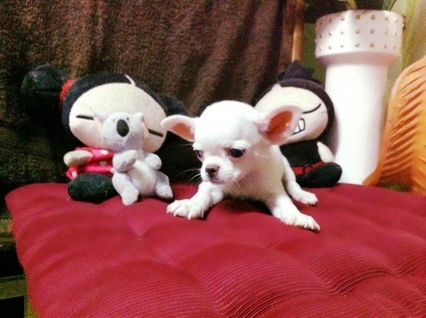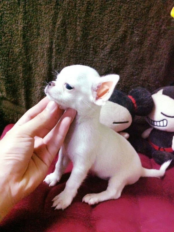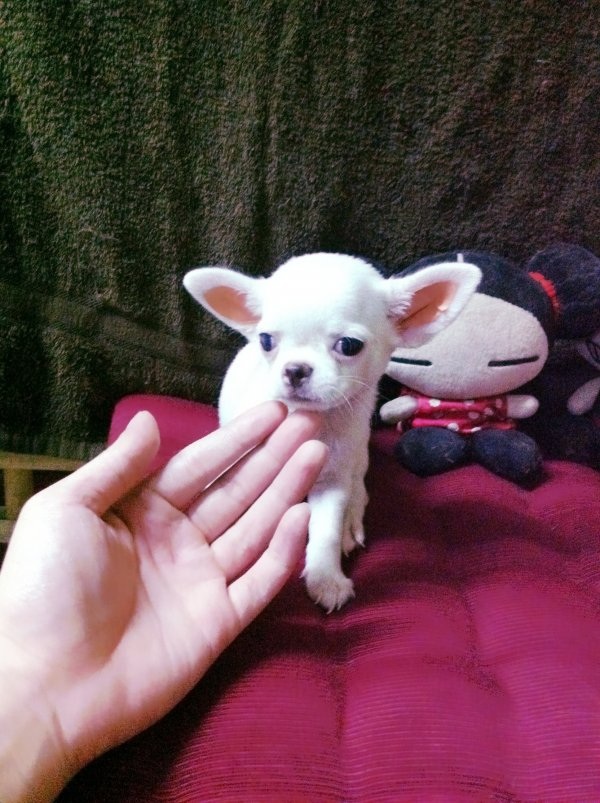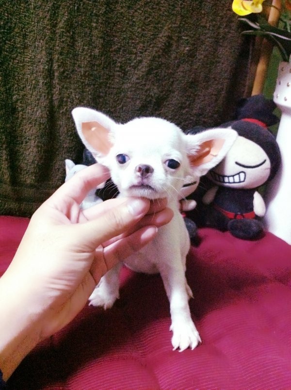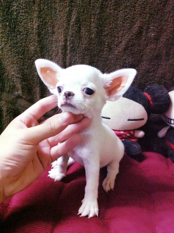 ชิวาวาตัวน้อยเพศผู้สีขาวล้วนมีใบเพ็ดพร้อมย้ายบ้านคร้าบ