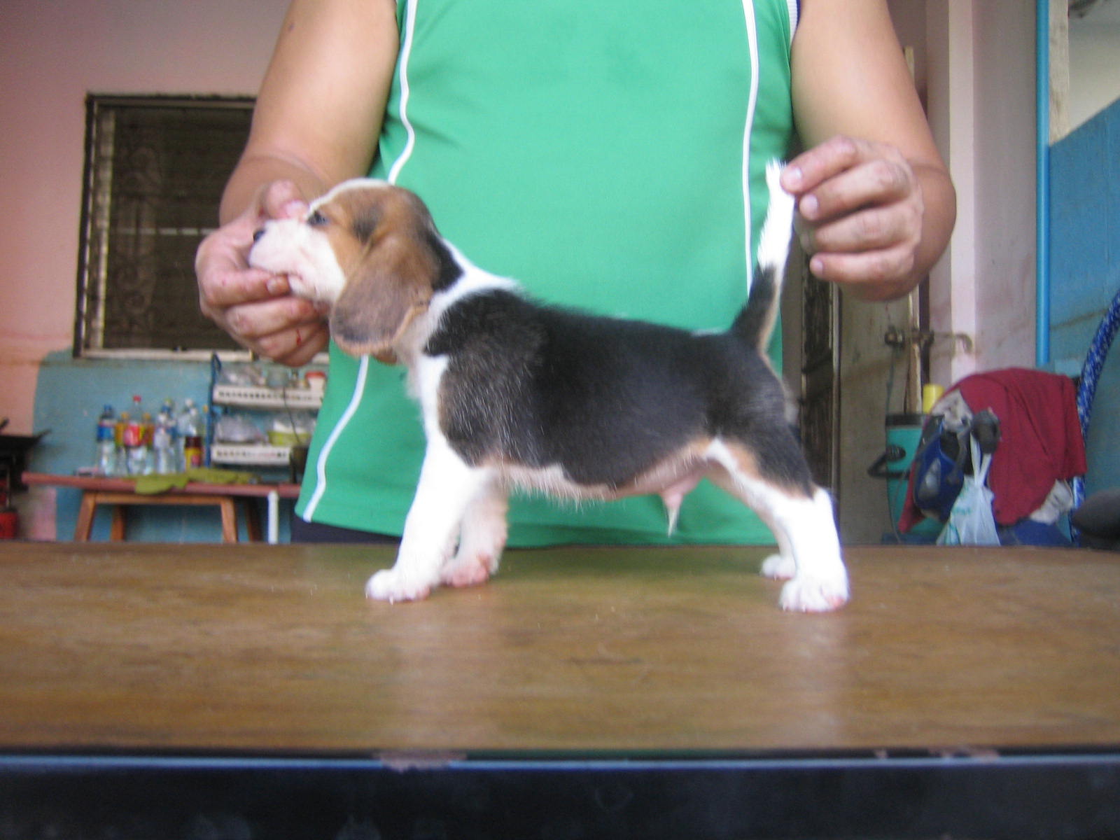 ลูกบีเกิ้ลอายุ 20-60 วัน โครงสร้างสวย ไซด์ 13 นิ้ว มีให้เลือก 7 ตัว มีใบเพดดีกรี