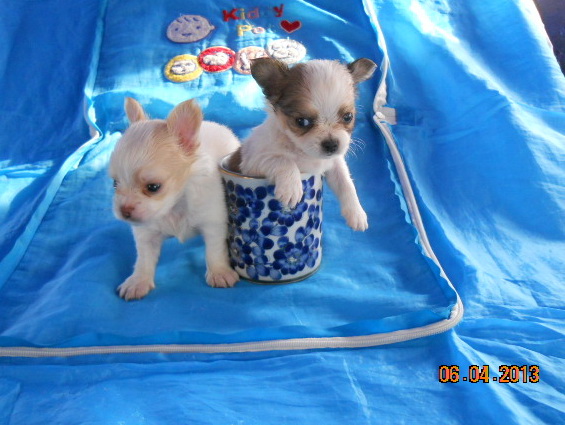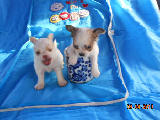 ***ขายลูกชิวาวา -ขนยาว ไซด์t-cupสีแฟนซี หน้าสั้นๆ เพศผู้2ตัว***