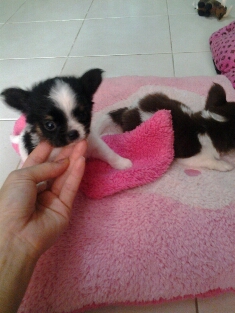 ขายชิวาวาสวยๆ เพศผู้ขนยาว ขนแนน่ๆสีขาวช้อค ขาวดำ มีคิ้วมีแก้มน่ารักมากๆ อายุ1เดือน น้องหมาพร้อมย้ายบ้านแล้วคะ พร้อมรับประกันสุขภาพ9500-11000 พร้อมใบเพด0816588429