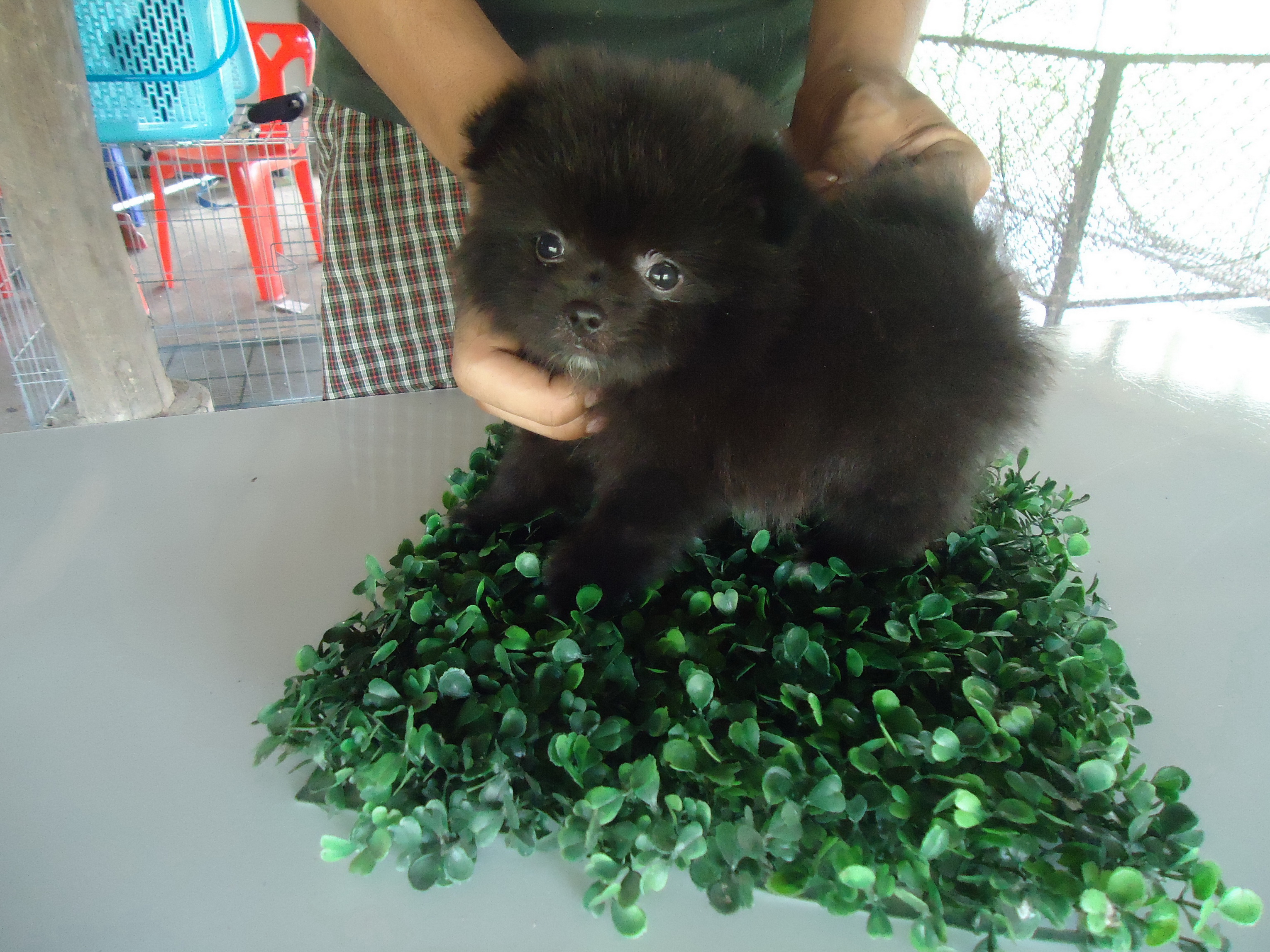 ลูกปอมสีดำปากสั้น หน้าหมี อายุ55 วัน เพศผู้ วัควีนเเล้ว 0871583199