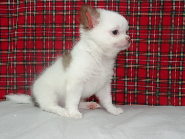 (จองแล้วครับ)เด็กชายชิวาว่าหัวสูง ขนยาวสีขาวช็อค อัพเดตรูป&ลดราคาน้องครับ