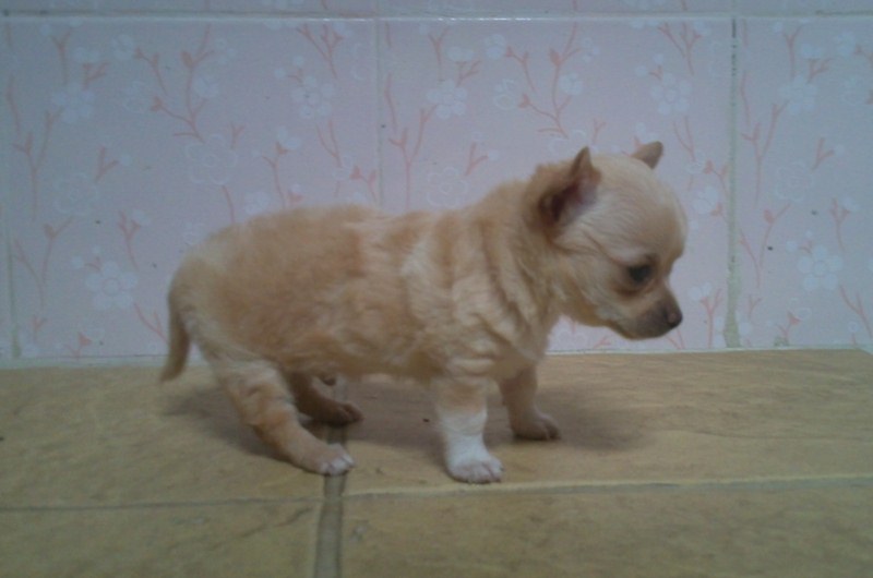 ชิวาว่า ขนยาว สีขาวครีม ตัวผู้ กระโหลกสวย ตัวเล็ก 5500 ส่งฟรี กทม เชียงใหม่ เชียงราย ภูเก็ต ขอนแก่น และหาดใหญ่
