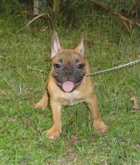 ลูกเฟรนซ์บูลด็อกสายเลือดอเมริกันเพศผู้ตัวหนาล่ำสั้นเตี้ย