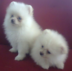 ขายปอม สีขาวครีม เพศผู้ มีสองตัว อายุ 2 เดือน พร้อมใบเพ็ดเต็มใบ รับรองคุณภาพ 0805855376 0869045684