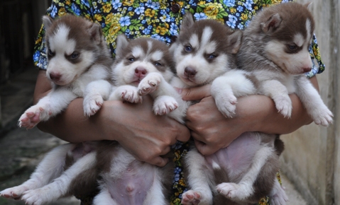 น้องหมาไซบีเรียน เพศผู้ 6 ตัว สีคอปเปอร์ สีขาวดำ น่าตาน่ารัก พร้อมขนส่งฟรีค่ะ ราคา 9500 สนใจติดต่อคุณตุ่น 0856266759