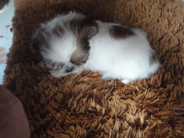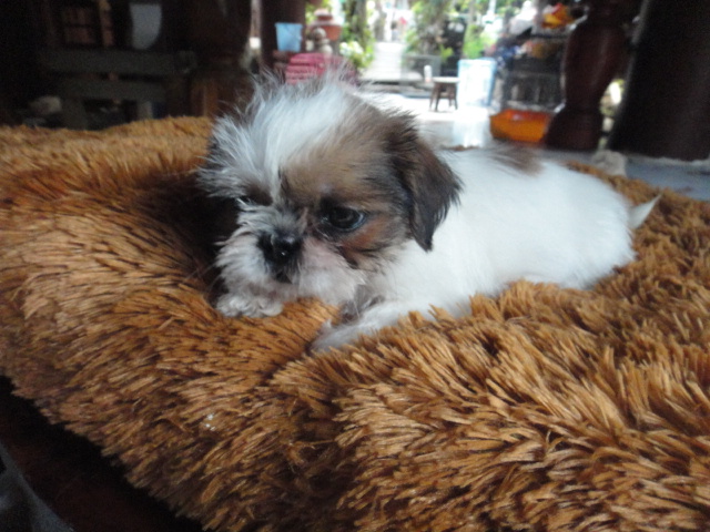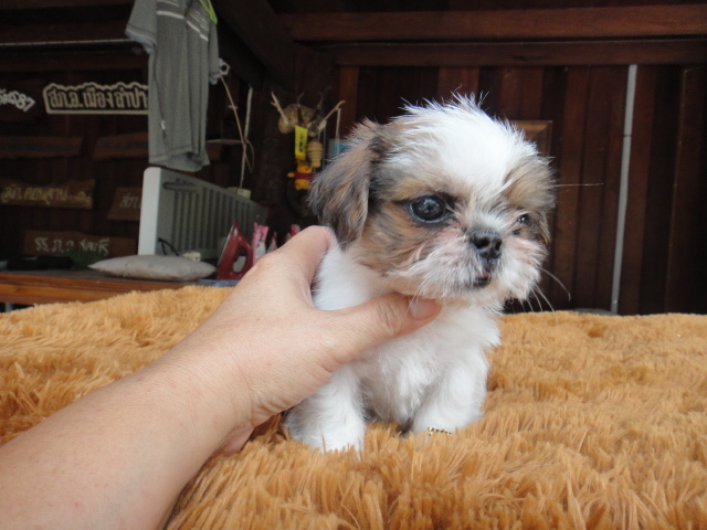 ชิสุทอย อายุ 57 วัน เพศเมีย แถมวัคซีนและถ่ายพยาธิ ตัวเล็กแข็งแรง สีขาว มีสีน้ำตาลปนด้านหลั